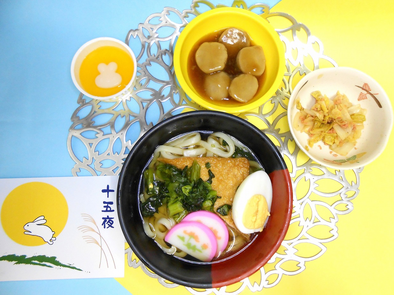 ・お月見うどん ・白菜の和え物 ・里芋のあんかけ ・お月見ゼリー